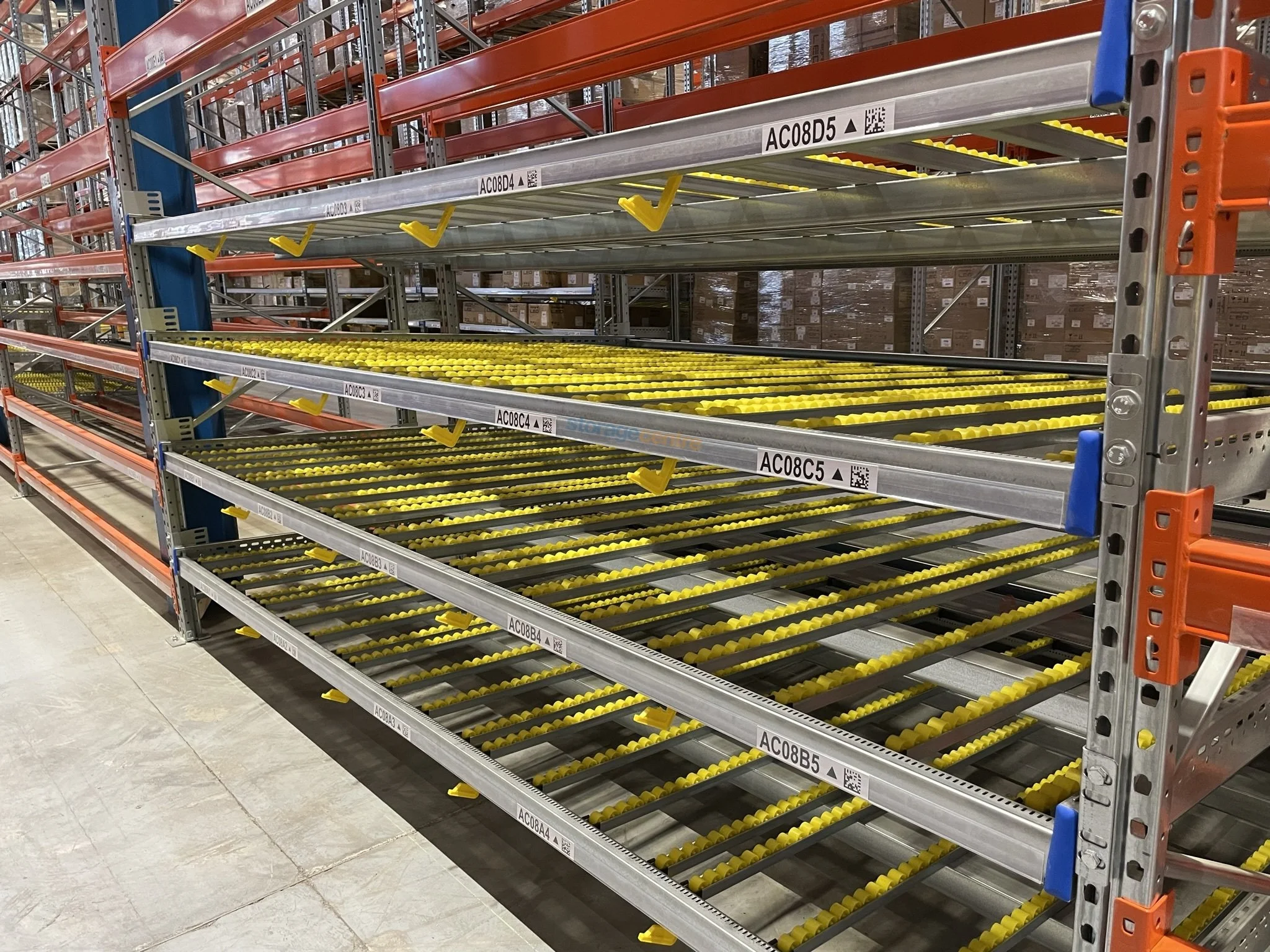 Carton Live Storage (CLS), also known as gravity flow racking, is a dynamic and efficient system designed specifically for warehouses with high picking volumes. This innovative equipment makes efficient use of space while fundamentally transforming your order fulfilment process, leading to reduced errors and a significant increase in throughput.
