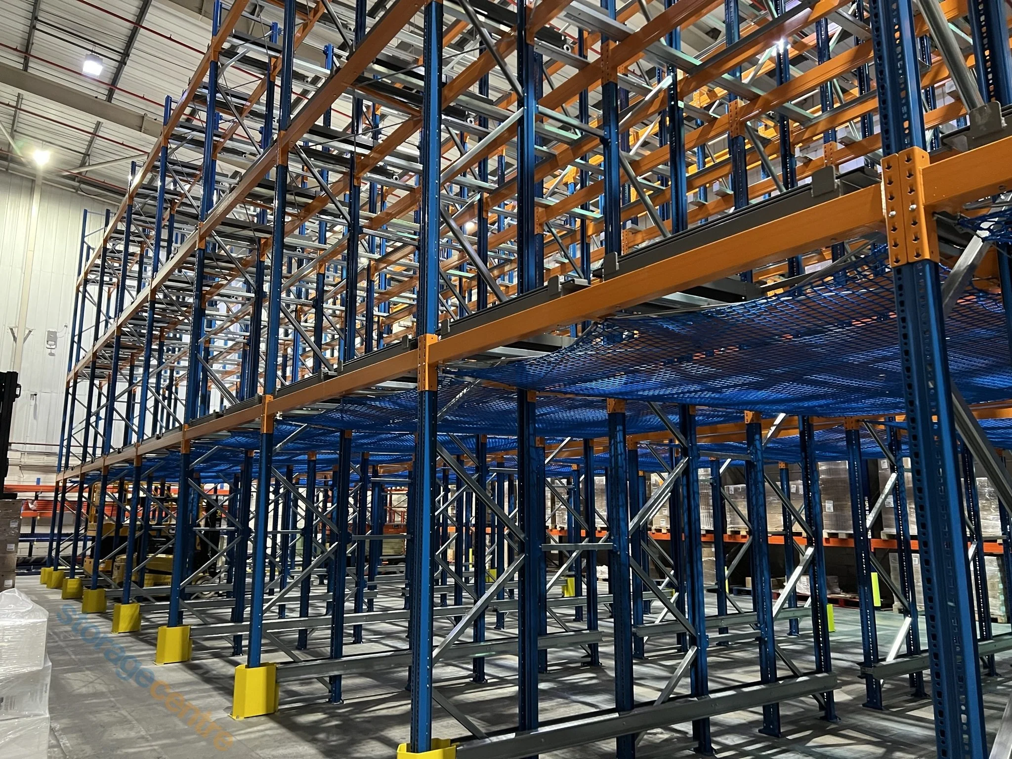 In this system, pallets are loaded from the front of the racking lane. Each new pallet pushes the previous one backwards, allowing multiple pallets to be stored within the same lane. When a pallet is retrieved, the remaining pallets automatically move forward, ready for collection.